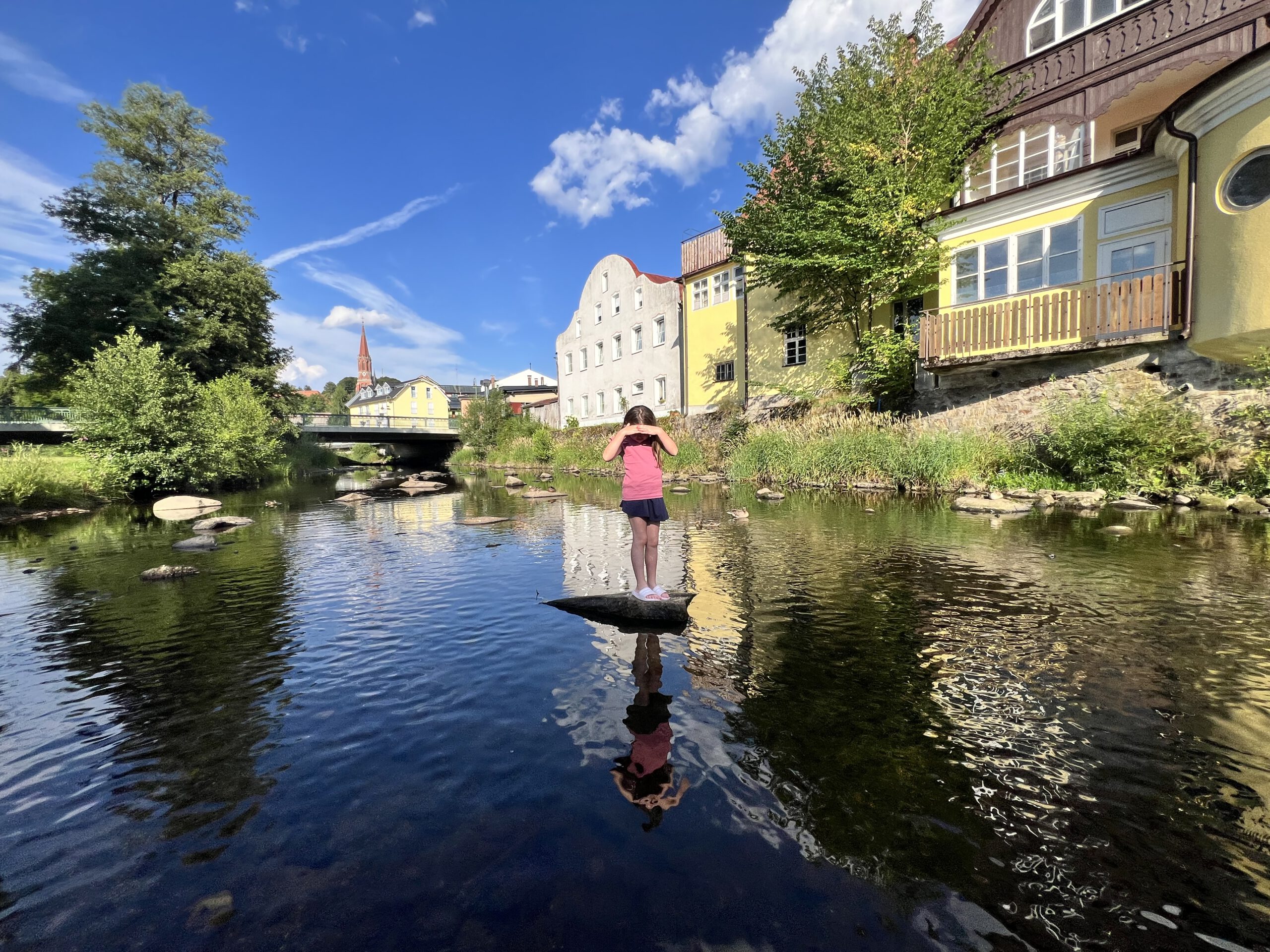 Ein Besuch in Bayrisch Eisenstein - in wenigen Schritten ist man in Tschechien. Es gibt einen gemeinsamen Bahnhof. Auf dem Rückweg von Bayrisch Eisenstein kann man im Haus der Wildnis aussteigen und befindet sich direkt am Rundweg des offenen, kostenlosen Tierparks - auch dies ist ein Ausflug wert.